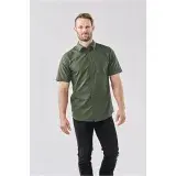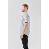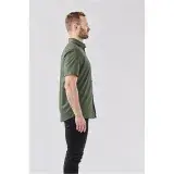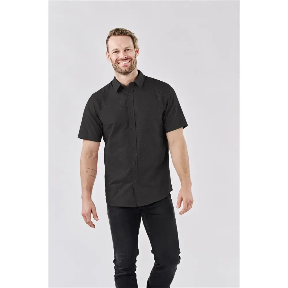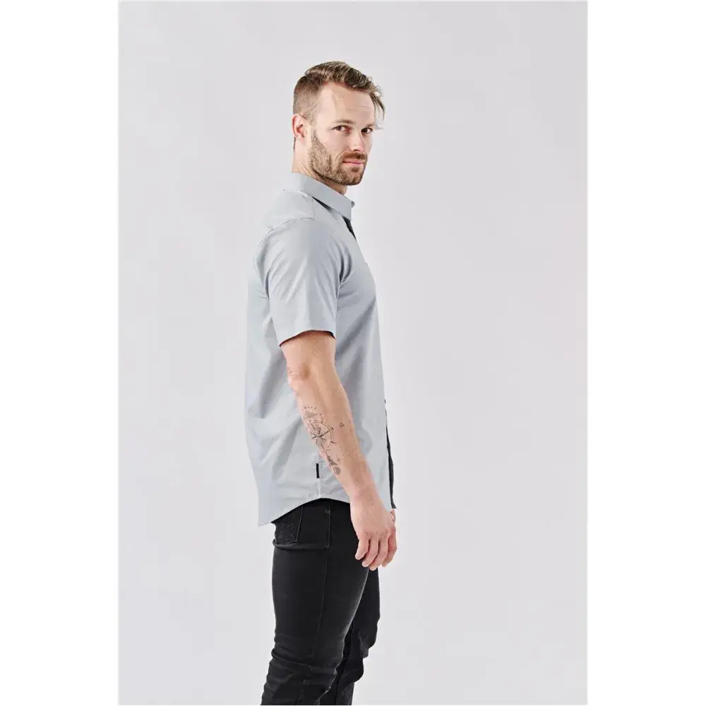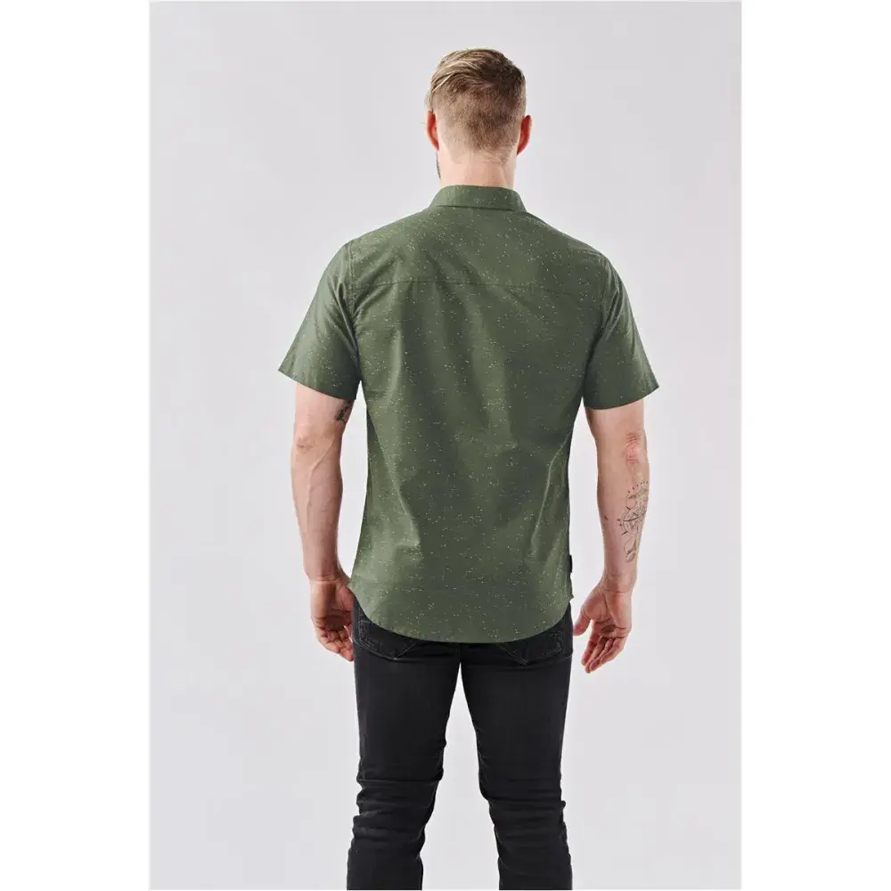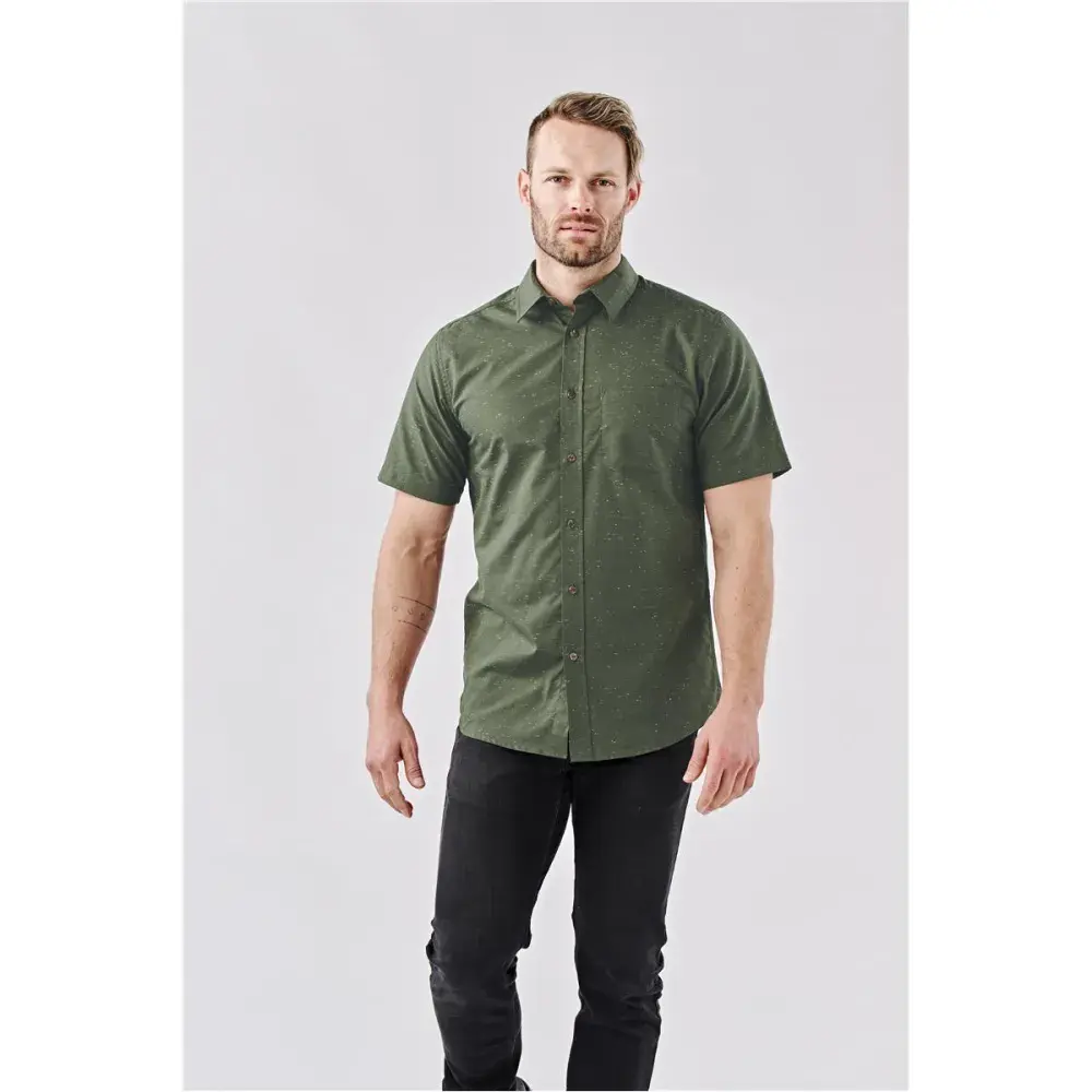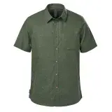A heathered slub fabric with a sleek design delivers a refreshing take on the traditional short sleeve shirt. This urban outdoor staple has a clean design that casually creates an eye-catching, cultured look with coconut button closures and a contoured hem to finish off this urban essential. The collar stand maintains collar shape and structure, wash after wash. Made from Recycled Polyester and BCI sourced Cotton for a reduced environmental footprint.
