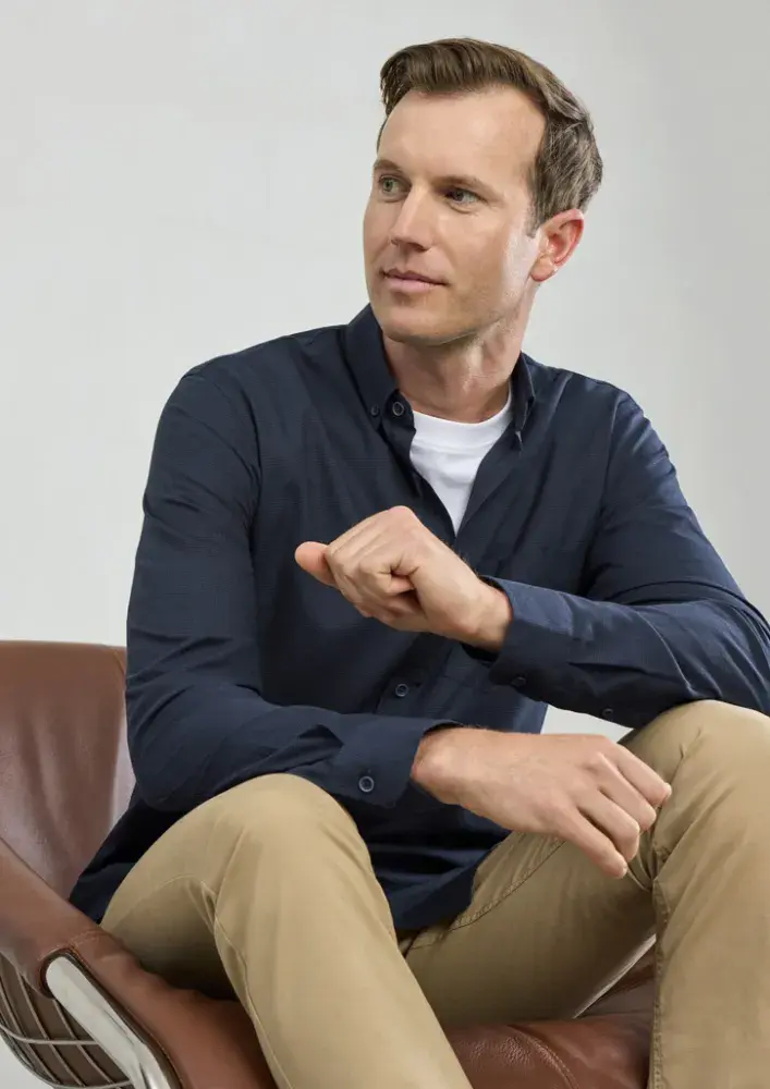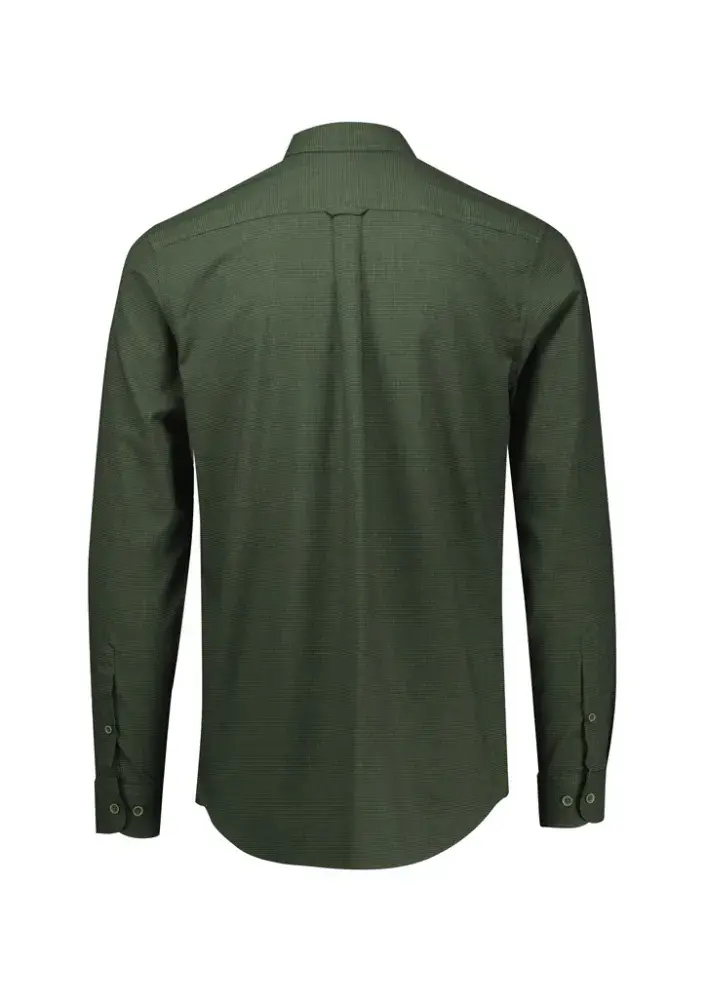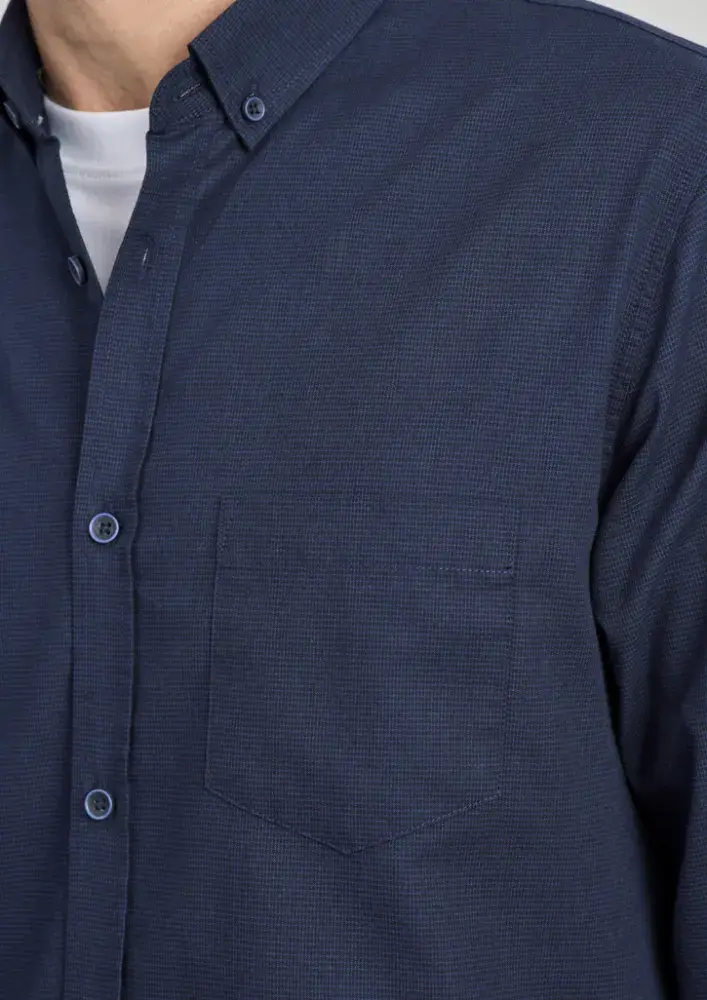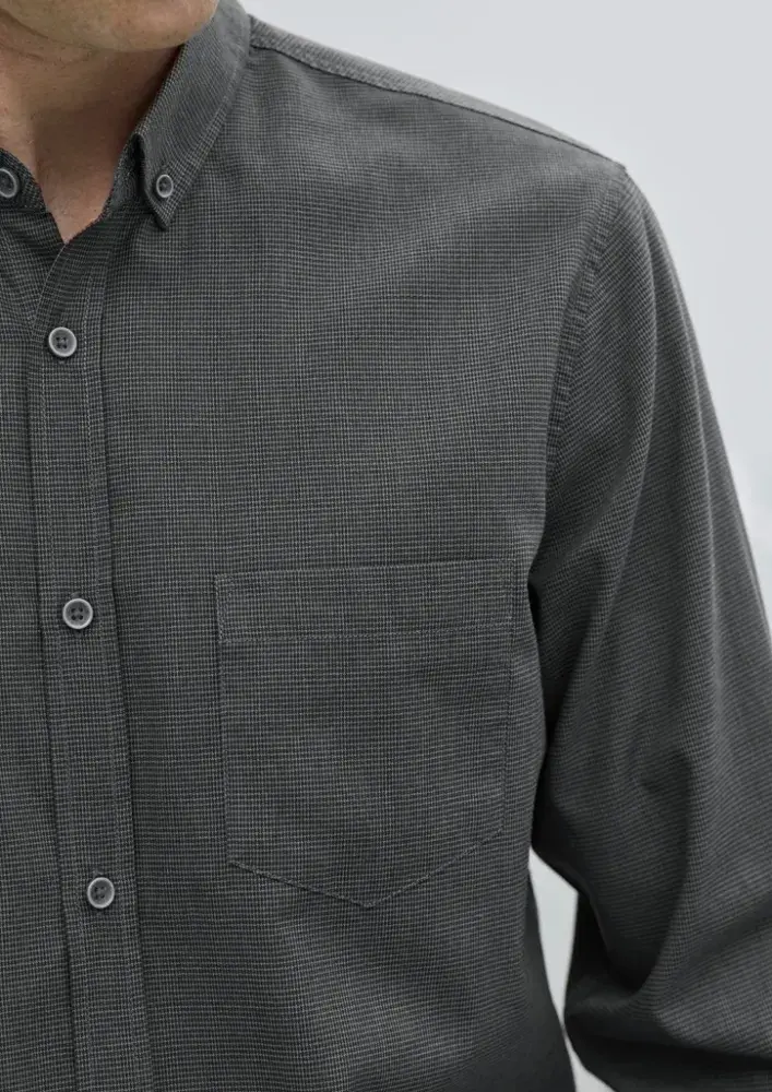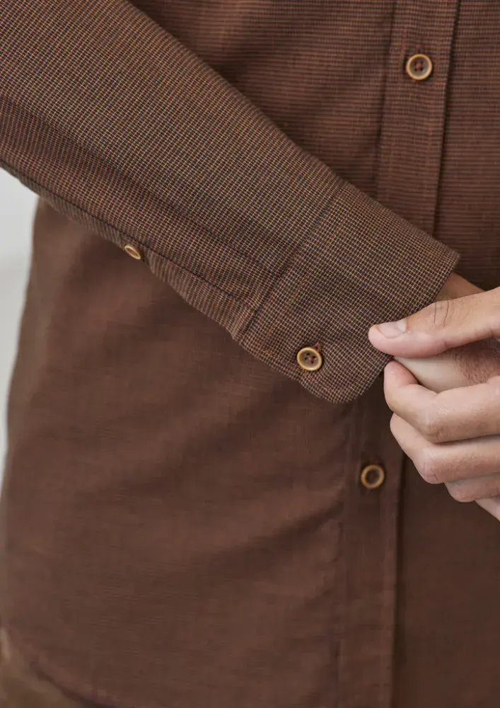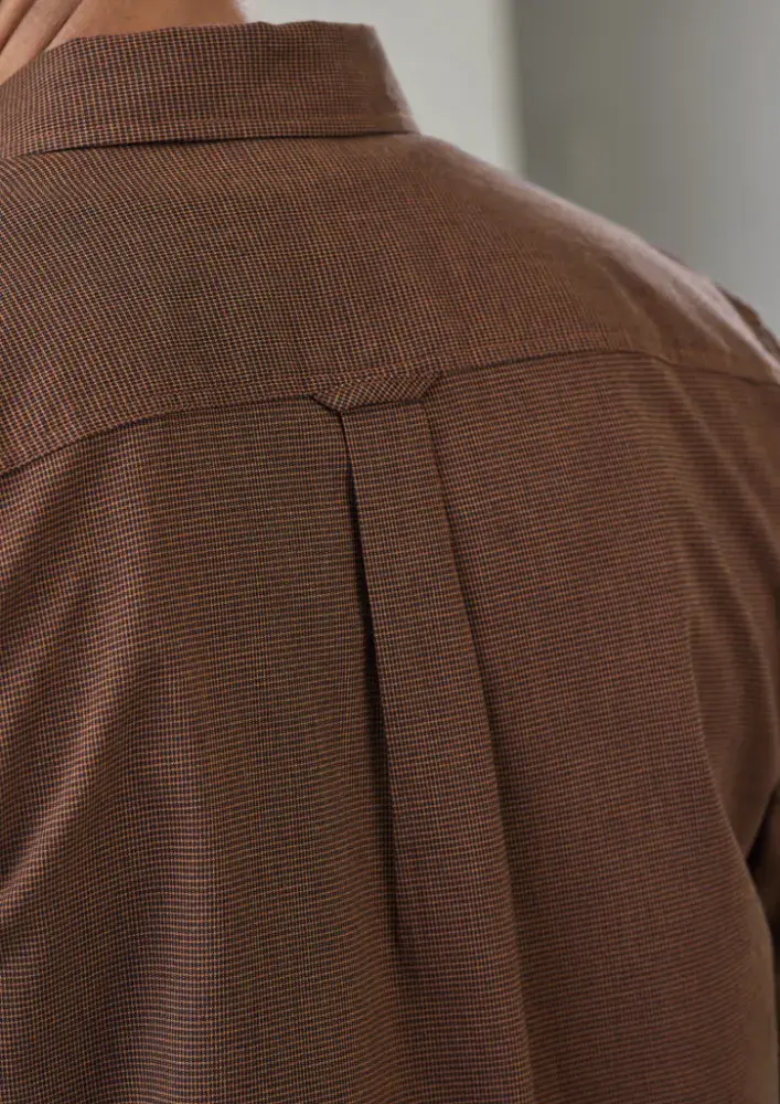 60% Cotton, 40% Recycled Polyester; Yarn-dyed Micro-check; 120 GSM; UPF Rating 15+