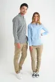 Button down collar, Roll up sleeve tab, Pearl buttons