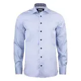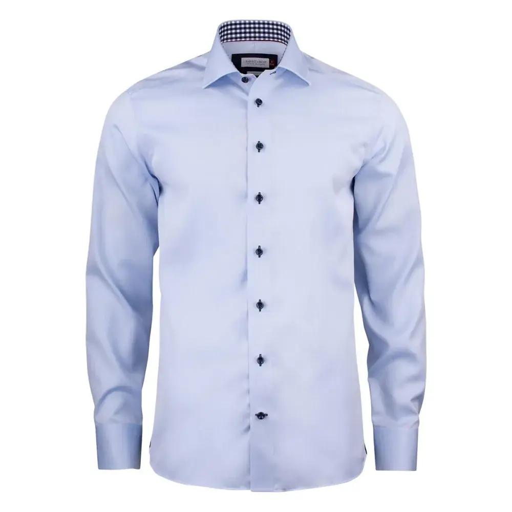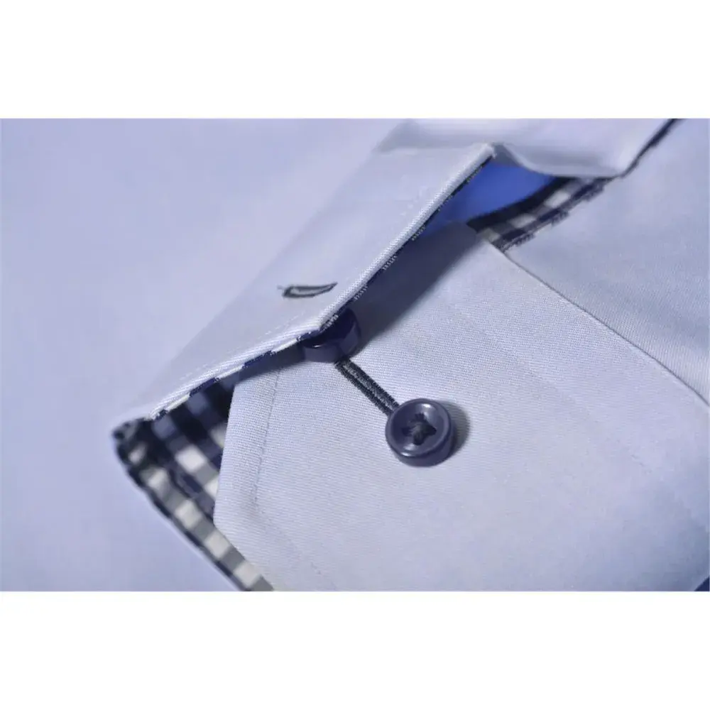 Men's non-iron solid coloured dress shirt with contrasting check at collar and cuffs, crafted in high performance twill texture.