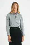 Concealed button down collar, Concealed placket with edging, Contoured front seams for superior fit, Gentle curved hem