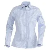 Checked pattern with coloured neck tape and contrast stripe inside cuffs, placket and collar.