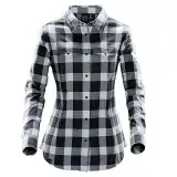 This ladies top has a classic plaid design that's highlighted by a lightweight, breathable cotton-blend fabric. The Logan womens long sleeve button-up shirt features snap cuffs, chest pockets, and full front button snaps for added styling.