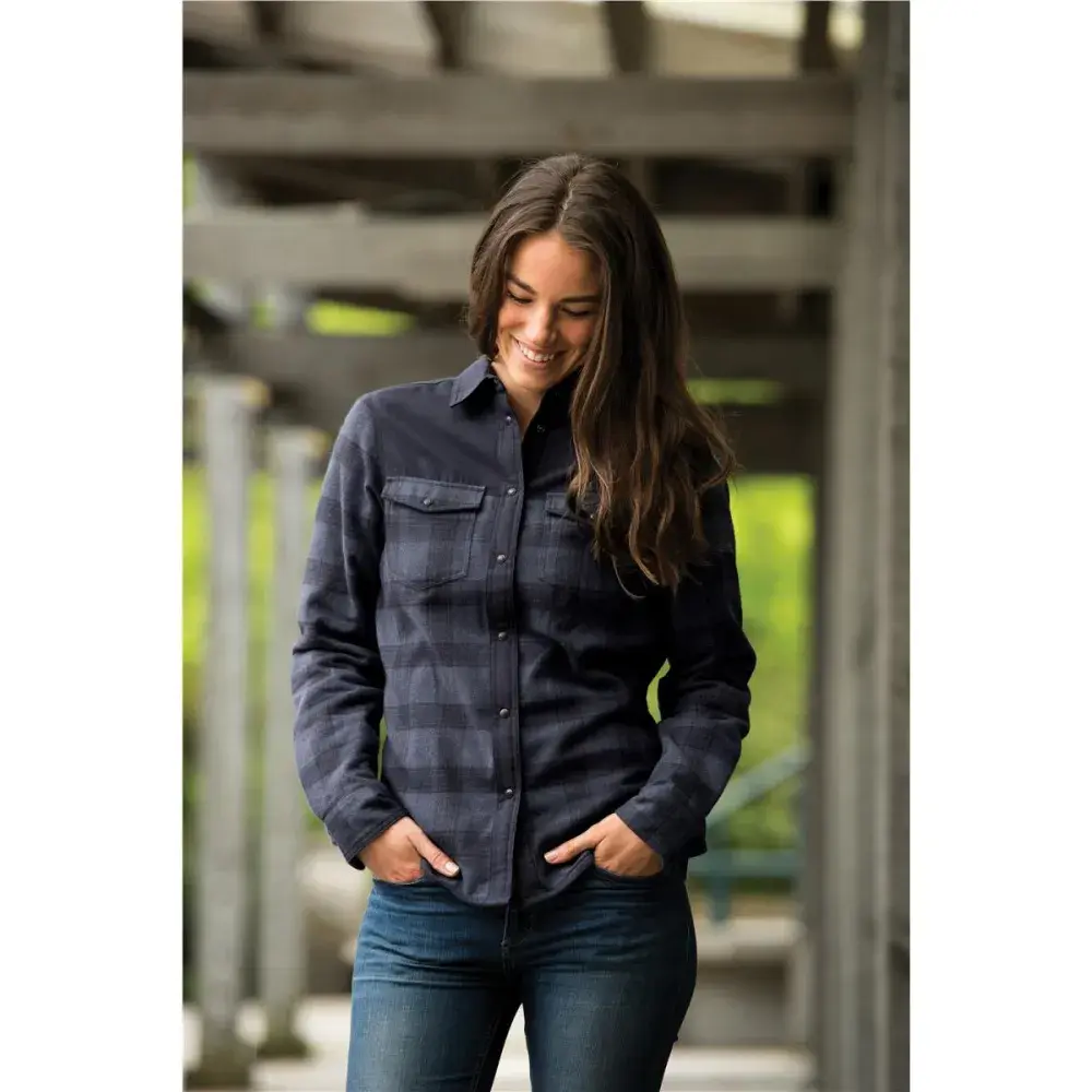 Classic plaid design combined with solid panels, highlights this fleece-lined, breathable cotton-blend thermal shirt. Featuring snap pockets, centre front and cuff closures for added styling and easy use.
