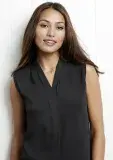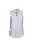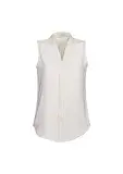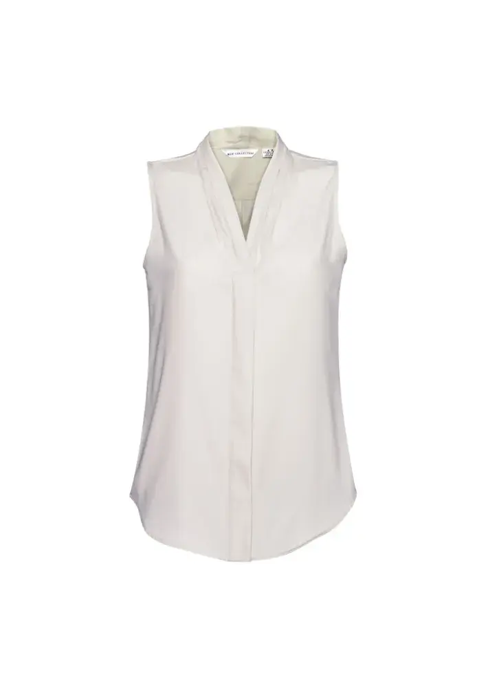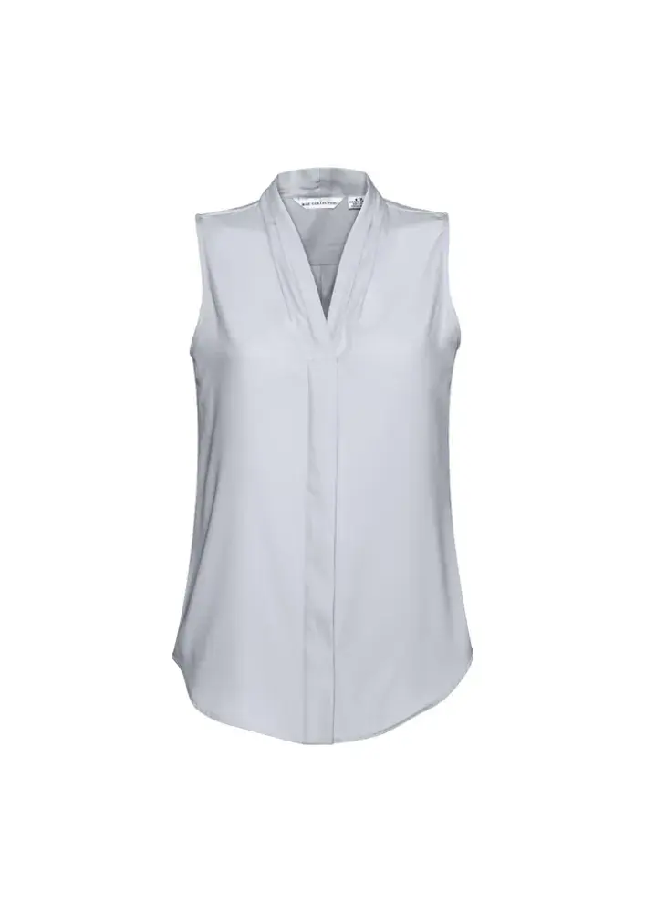 Our Madison sleeveless blouse has a clean, shawl collar neckline and concealed buttons, creating a beautiful understated silhouette.