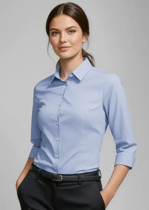 Our Mia top has a beautiful pleat fold detail, slightly offset to allow space for a company logo.