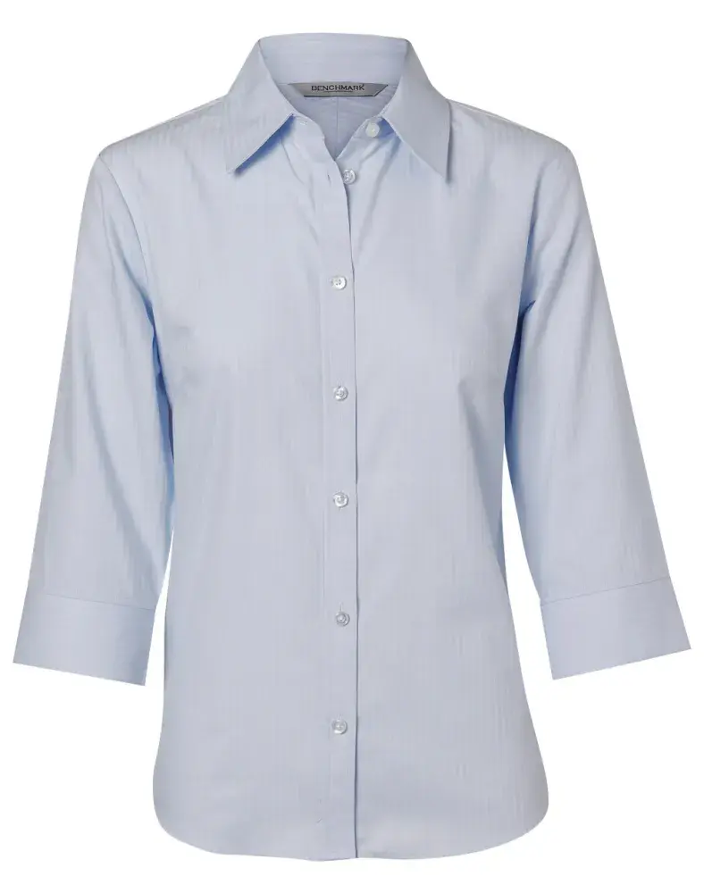 Custom Women's Mini Herringbone 3/4 Sleeve Shirt Pale Blue