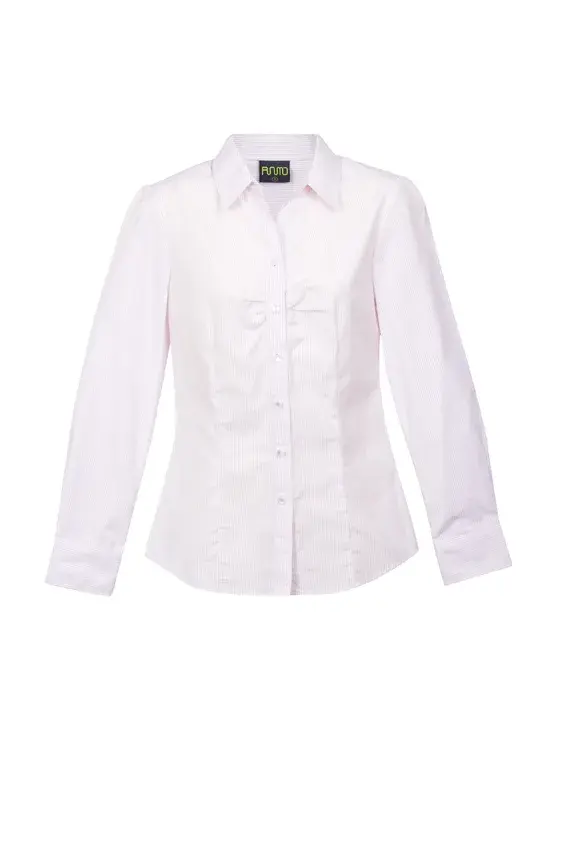 80% 20% poly Distinct yard dyed stripes Fashionable puff on sleeve and chest Slim fit Trendy cut Long Sleeve