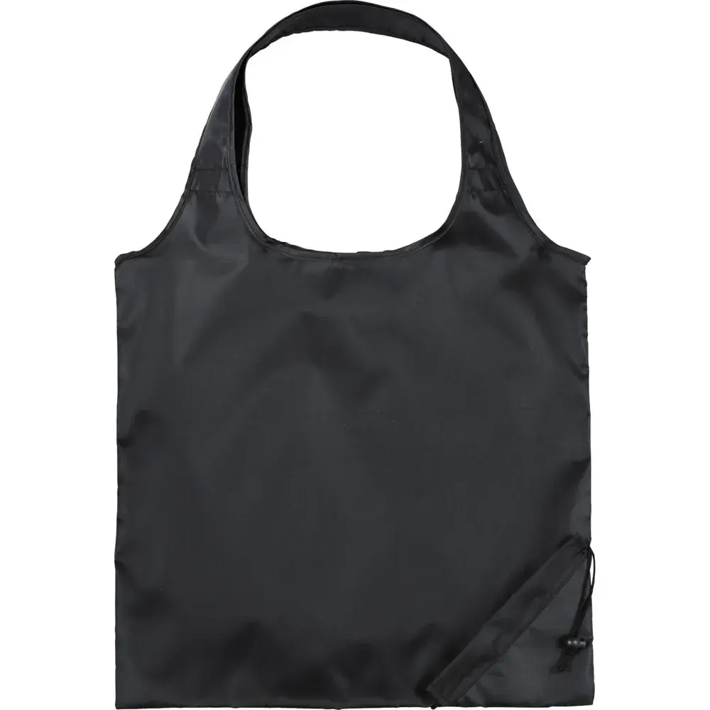 Open main compartment with double handles. Unique fold-away function gathers into corner with drawstring closure.