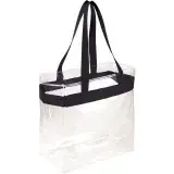 As part of Leed's exclusive Game Day Collection, this clear tote is perfect for fans packing their stadium and event day items safely. Also great for workplace safety. Open main compartment with sporty webbing trim and dual carrying handles. Note that if the bag is being carried into an NFL stadium, the NFL requires that logo sizes do not exceed 4.5 inch tall by 3.4 inch wide. Capacity of approximately 15L.