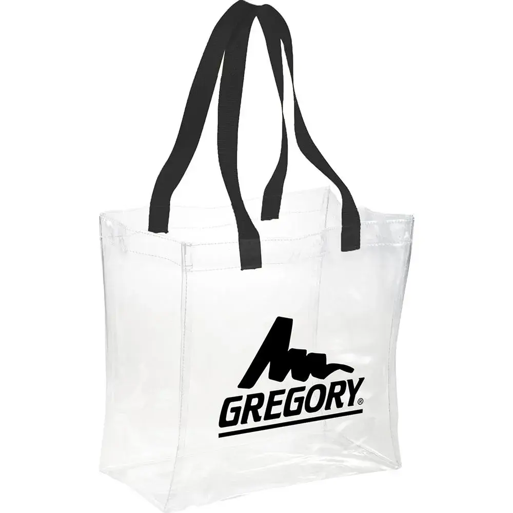 Clear material makes this bag perfect for stadium, event, workplace and other safety purposes. Open main compartment with double 21-1/2 inch webbing handles. Sizing applicable for NFL stadiums. Capacity of approximately 15L.