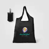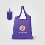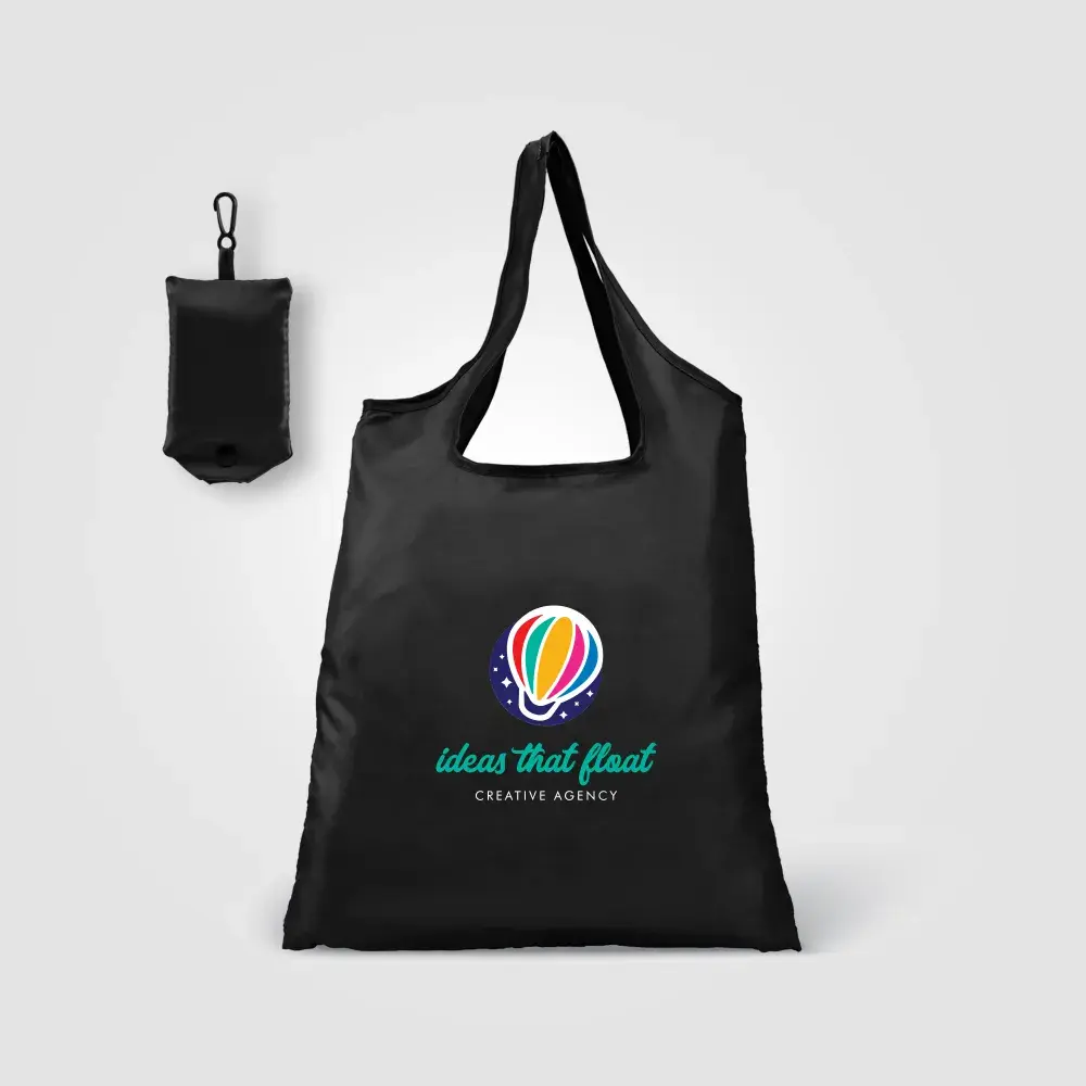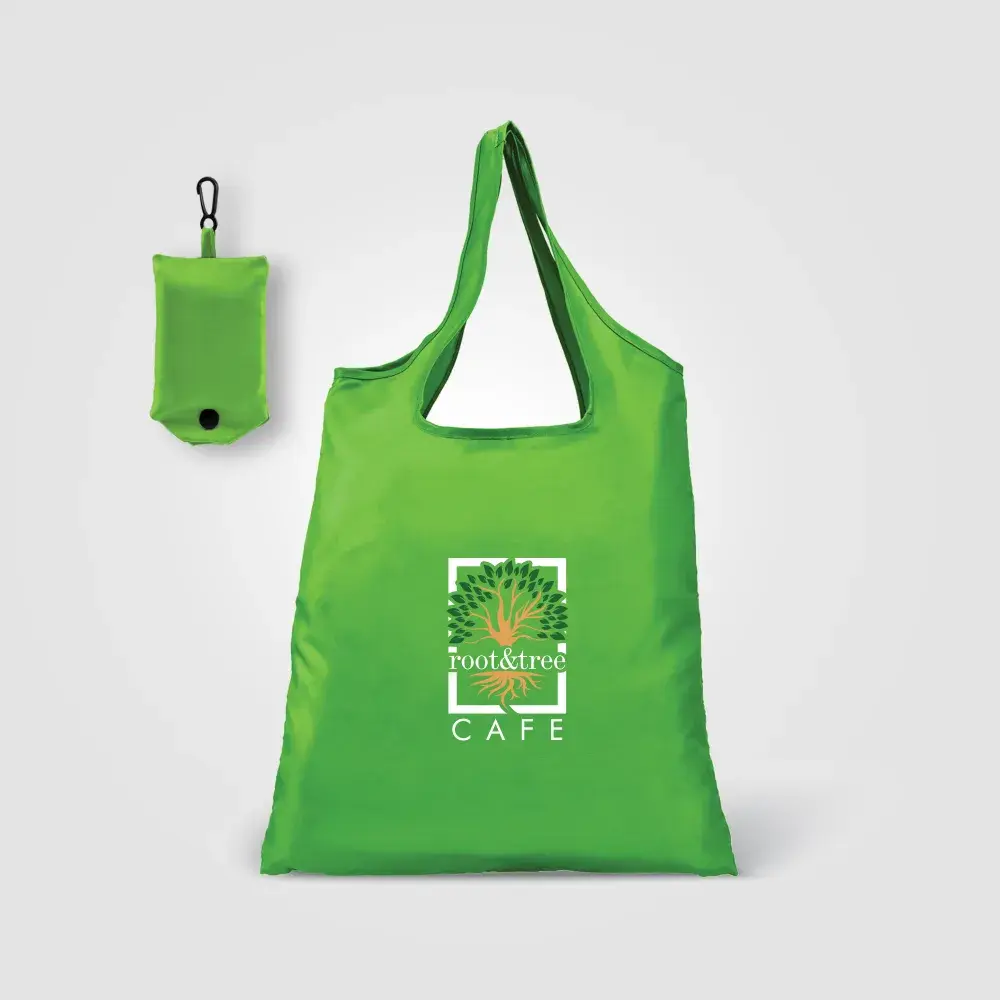 This reusable tote bag easily folds up into and stores inside a self-containing pouch! A small carrying clasp makes this shopping tote easy to secure, store and find within a larger handbag, backpack, or even a keyring! Made of 210D polyester, the Santorini features integrated double handles, and it can carry up to 6.8 kg. The handle is made from material that is continuous with the main bag, with an approximate span of 21 inches from left to right.