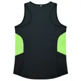 Custom TASMAN LADY SINGLETS - BLACK/NEON GREEN