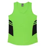 Custom TASMAN LADY SINGLETS - NEON GREEN/BLACK