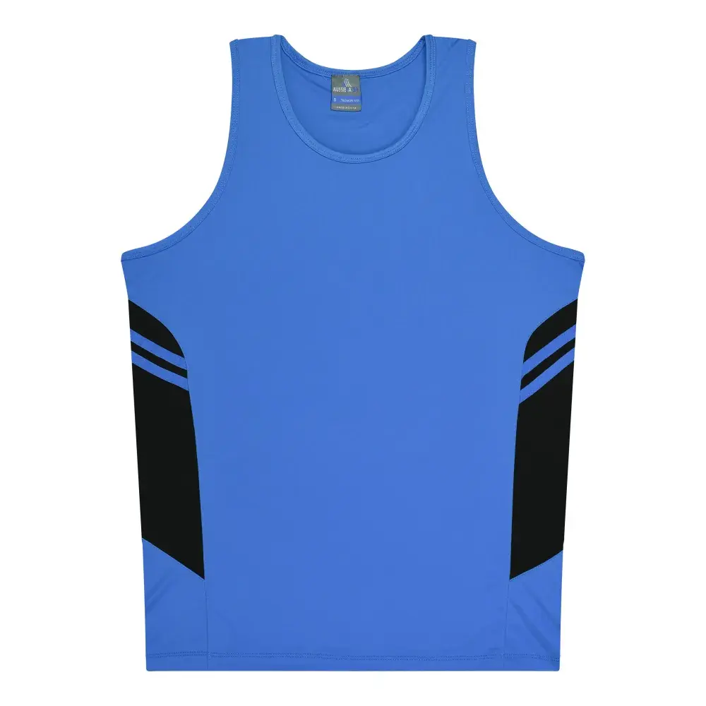 Custom TASMAN MENS SINGLETS - CYAN/BLACK