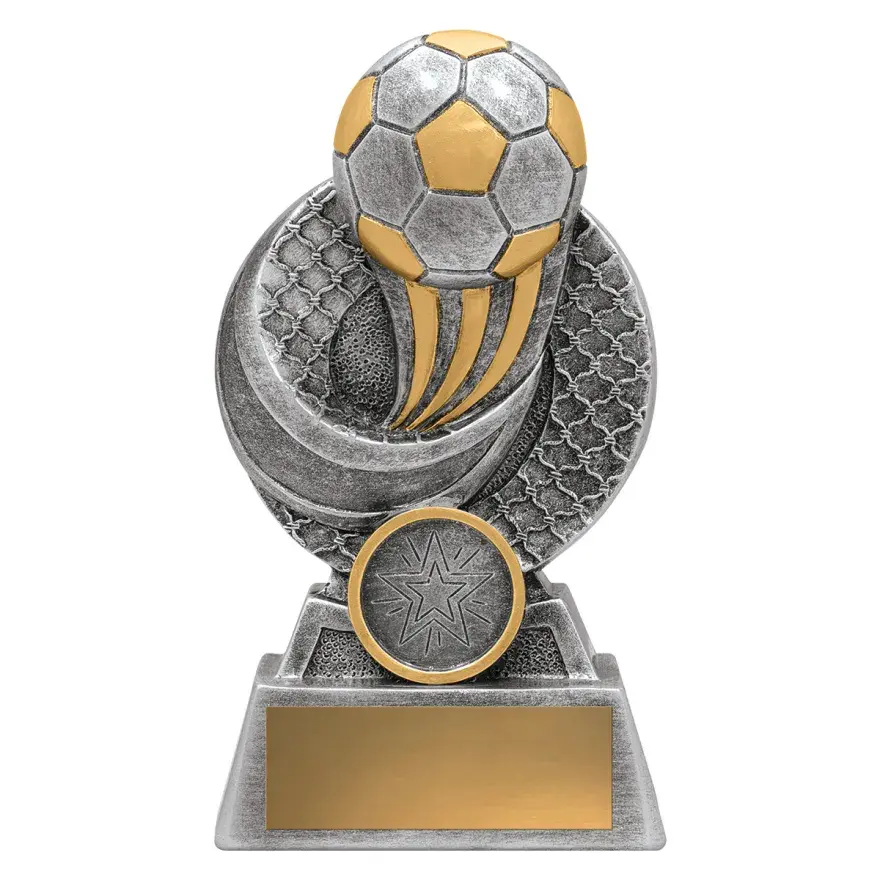 Apex trophies for Football offer the combination of elegant design, multi-textured elements and brilliant silver & gold colours. Central space for your logo.