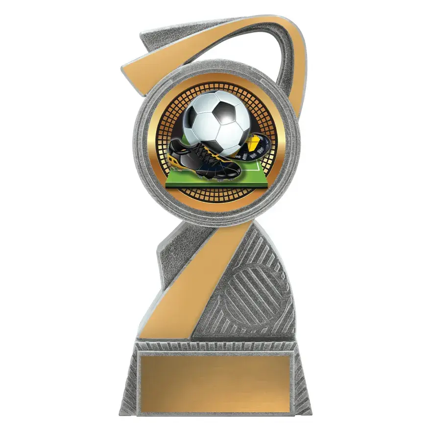 Striking design for your football trophies - pair of sizes available - that feature prominent boot and ball elements and finished in classic antique silver and gold colours.