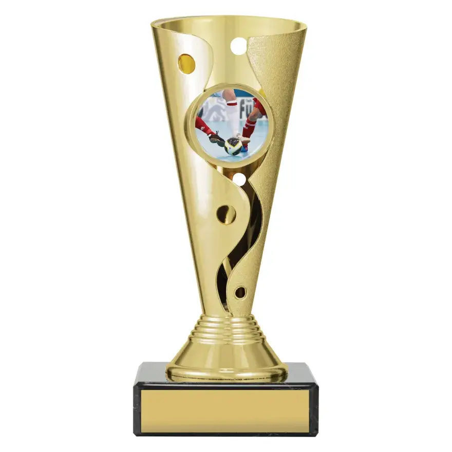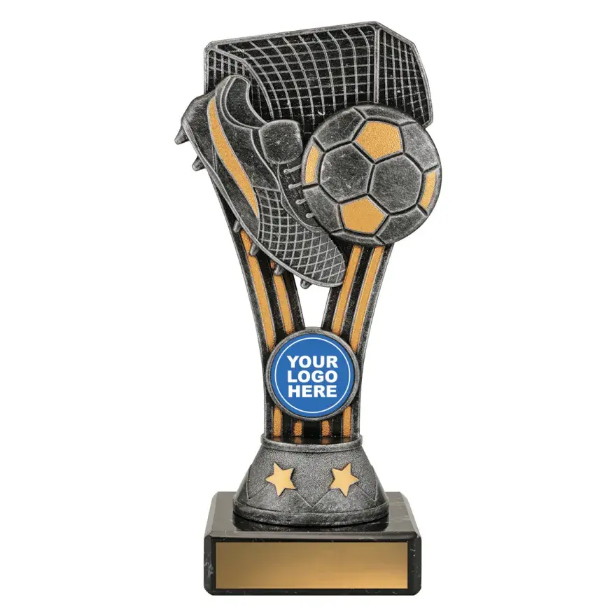 Affordable and popular Mini Star Football trophy for kids and players both male and female. An attractive star inspired design, classic silver and gold colours and at a budget price, well suited for football club and team orders.