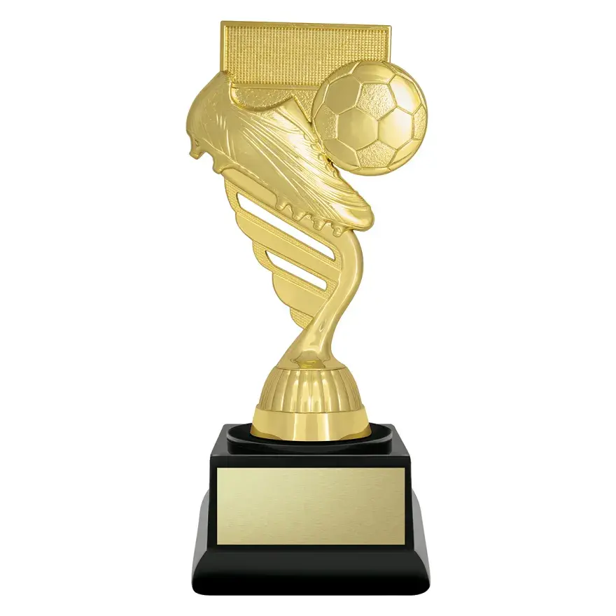 Football trophies ideal for kids and player participation awards. The design showcases the soccer boot and ball elements on a stylish lightning bolt background. Available in 5 award sizes with the optional space for an insert if required.