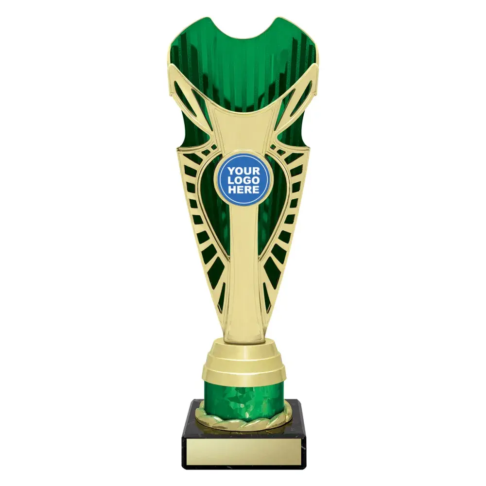 Shine Cups provide an impressive set of trophies with prime position for your custom logo. With different colours available, there is a range of great awards possible to complete your event or presentation.