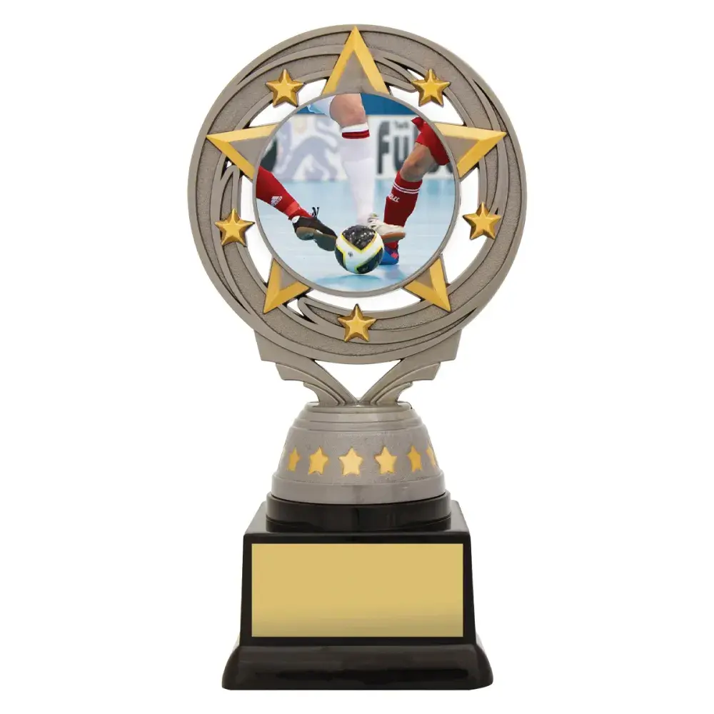 Affordable range of holder style trophies in gold & silver suit 25 or 50mm insert. Add insert from range available or ask about custom logo or design.
