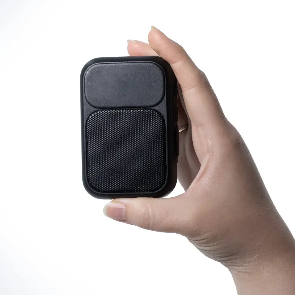 This clip speaker brings the good vibes wherever you hook it. Small in size but loud where it counts, it clips easily onto bags, belts or gear so the soundtrack follows you without fuss. Built to handle everyday knocks and quick adventures, it's a go-to for events, outdoor promos and brand moments that like a bit of volume.