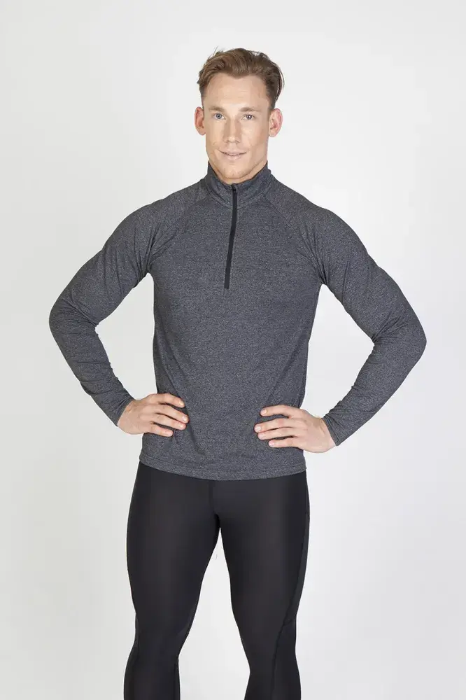 170 gsm 50% cotton 45% poly 5% spandex This unique composition of cotton, polyester and spandex offers an optimal combination of softness, stretch and comfort in this modern heather half-zip long sleeve. Bonded half-zip with mock neck for enchanced wind-resistance Half-zip collar with sealed cuff to avoid zipper touching skin Raglan sleeves and Spandex for better movement and a comfortable stretch fit