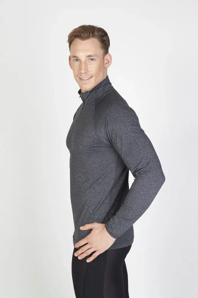Custom Mens Greatness Half Zip Mock Neck dark heather L