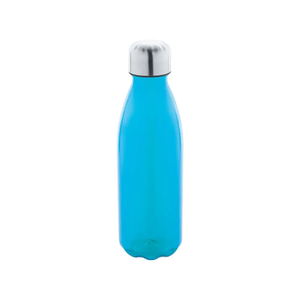Made from eco-friendly RPET material. | 600ml capacity for everyday use. | BPA-free for safe hydration. | Stainless steel cap for durability and style. | Lightweight and portable design. | Not suitable for carbonated drinks.
