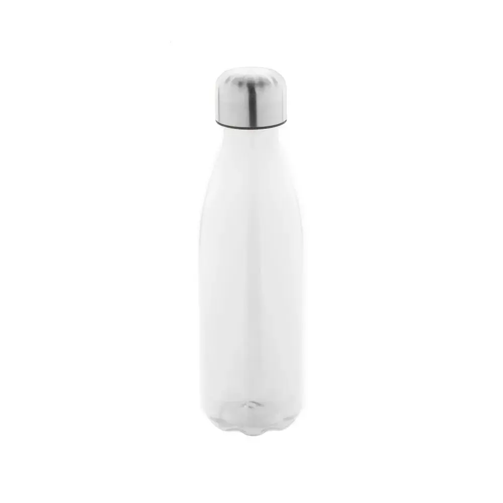 Made from eco-friendly RPET material. | 600ml capacity for everyday use. | BPA-free for safe hydration. | Stainless steel cap for durability and style. | Lightweight and portable design. | Not suitable for carbonated drinks.