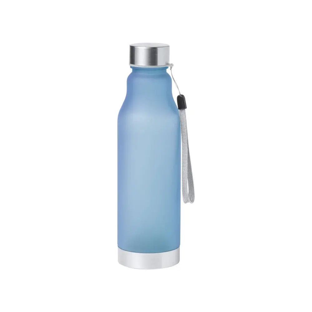Made from recycled RPET plastic for sustainable hydration. | 600ml capacity for longer-lasting refreshment. | BPA-free for safe daily use. | Stainless steel cap and base for durability and a sleek finish. | Carry strap included for portability. | Not suitable for carbonated drinks.