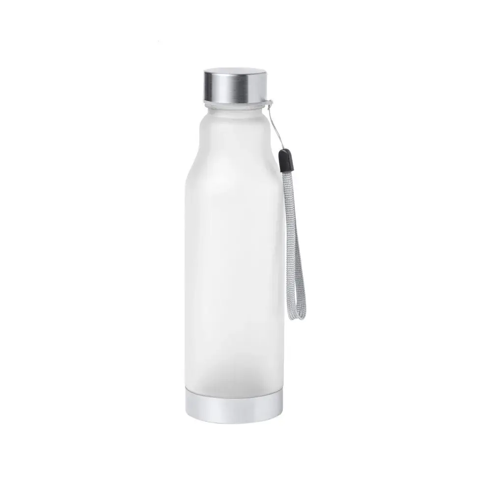 Made from recycled RPET plastic for sustainable hydration. | 600ml capacity for longer-lasting refreshment. | BPA-free for safe daily use. | Stainless steel cap and base for durability and a sleek finish. | Carry strap included for portability. | Not suitable for carbonated drinks.