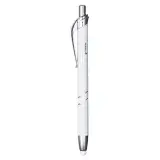 This click-action metal pen with a unique rubberised finish offers a sleek, comfortable grip and smooth black ink. It also features a matching stylus tip for seamless device use. Engraving reveals a striking matte finish, making it both functional and eye-catching
