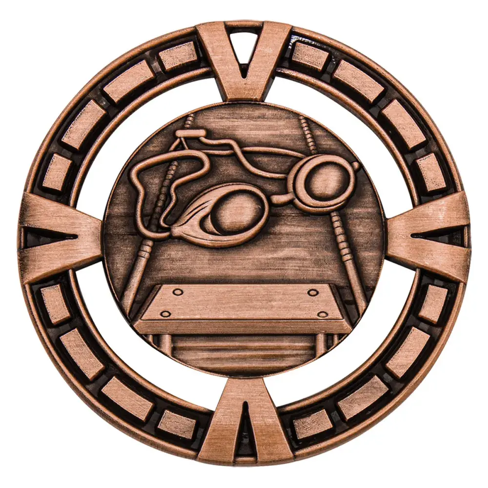 Series of outstanding medals in range of different sports and activities. Excellent value in this swim medal series, medals are a bigger size than average. Different, eye-catching design of medal for swimming events and competitions.