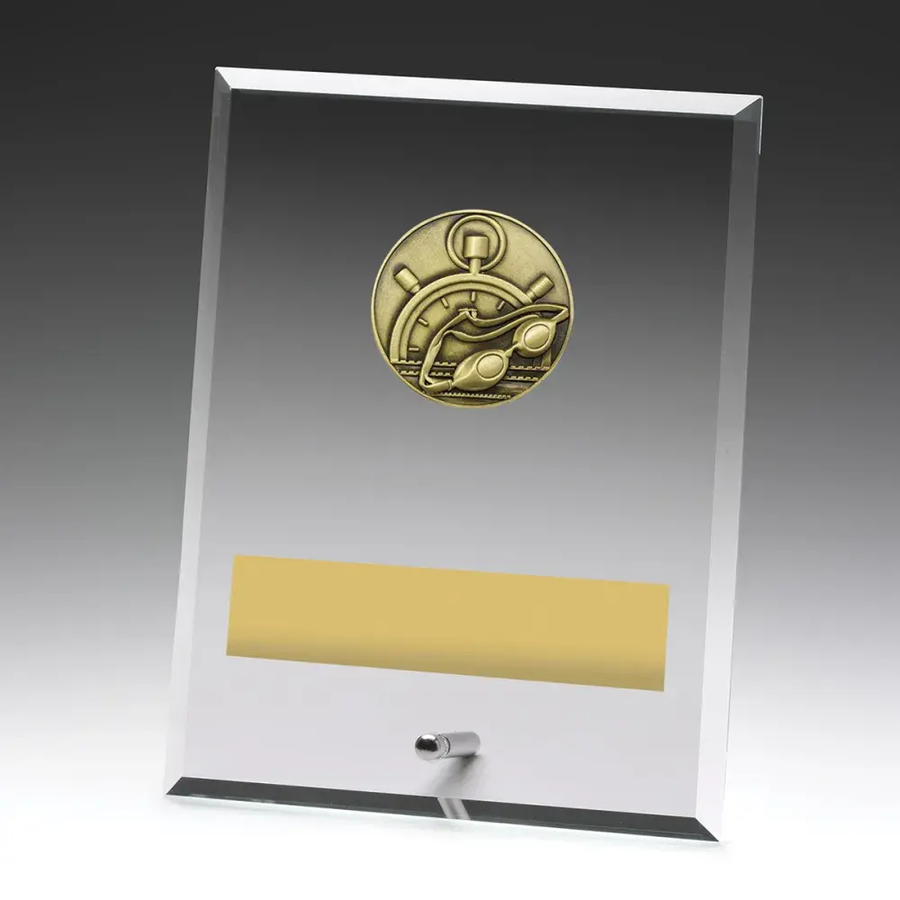 Smart, more prestige award option with elegant glass plaques in 3 great sizes. Available in premium gift boxes. Metal centre fronts available in variety of sports and activities. Multiple options for your engraving.