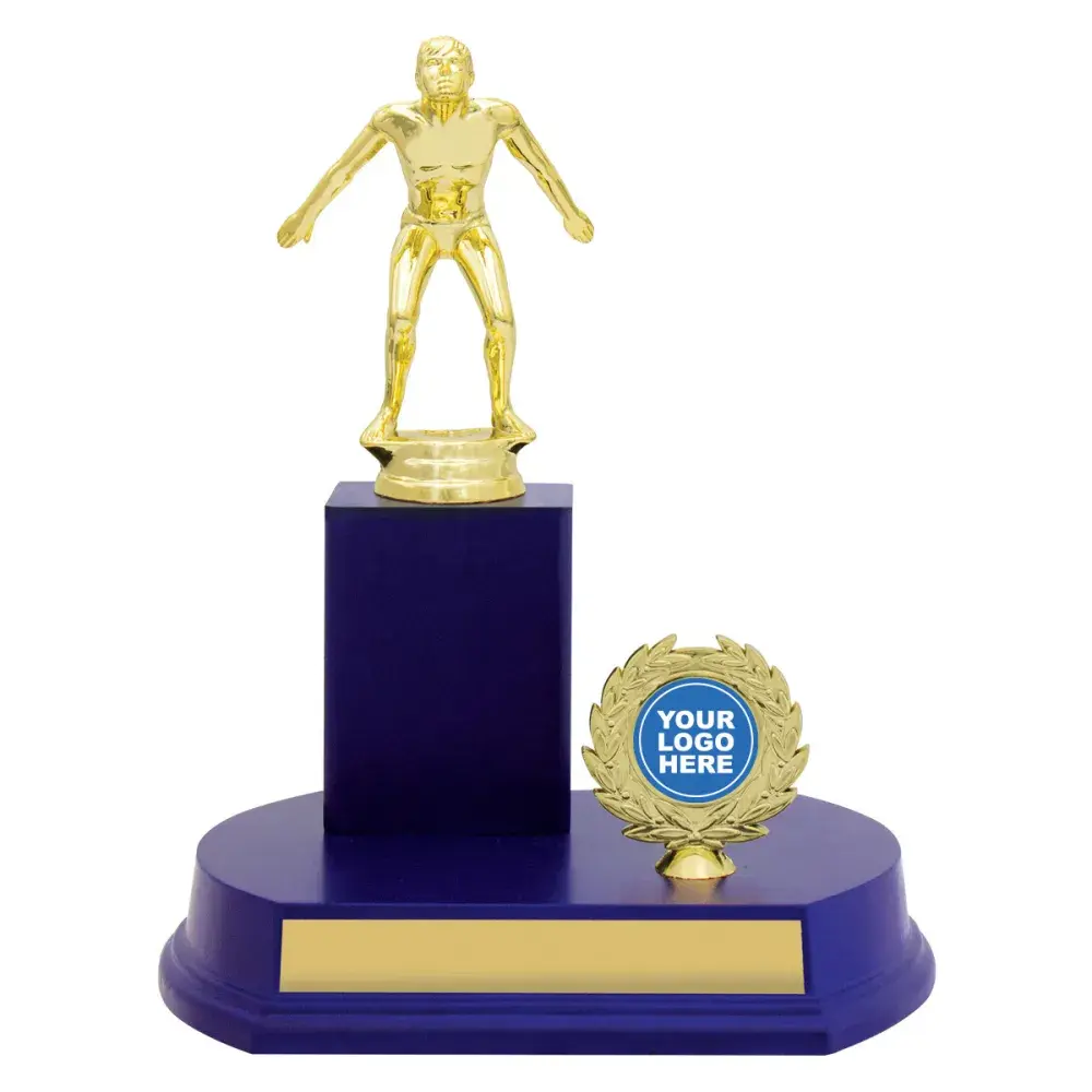 Distinctive design of timber trophy highlights the top for your sport and showcases your custom logo. Available in multiple sizes.