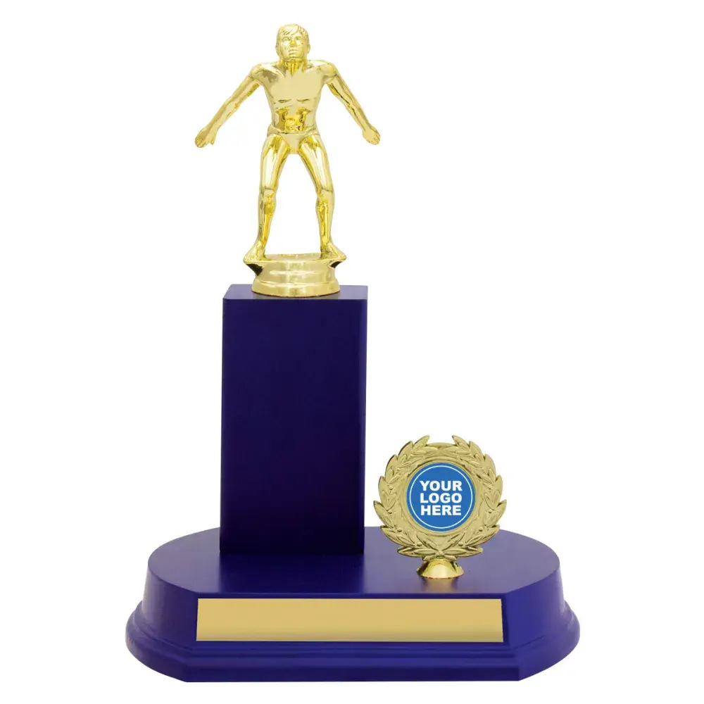 Distinctive design of timber trophy highlights the top for your sport and showcases your custom logo. Available in multiple sizes.