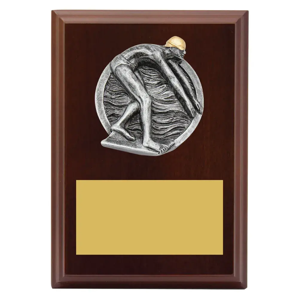Custom Peak Plaque - Male Swim Walnut 150mm