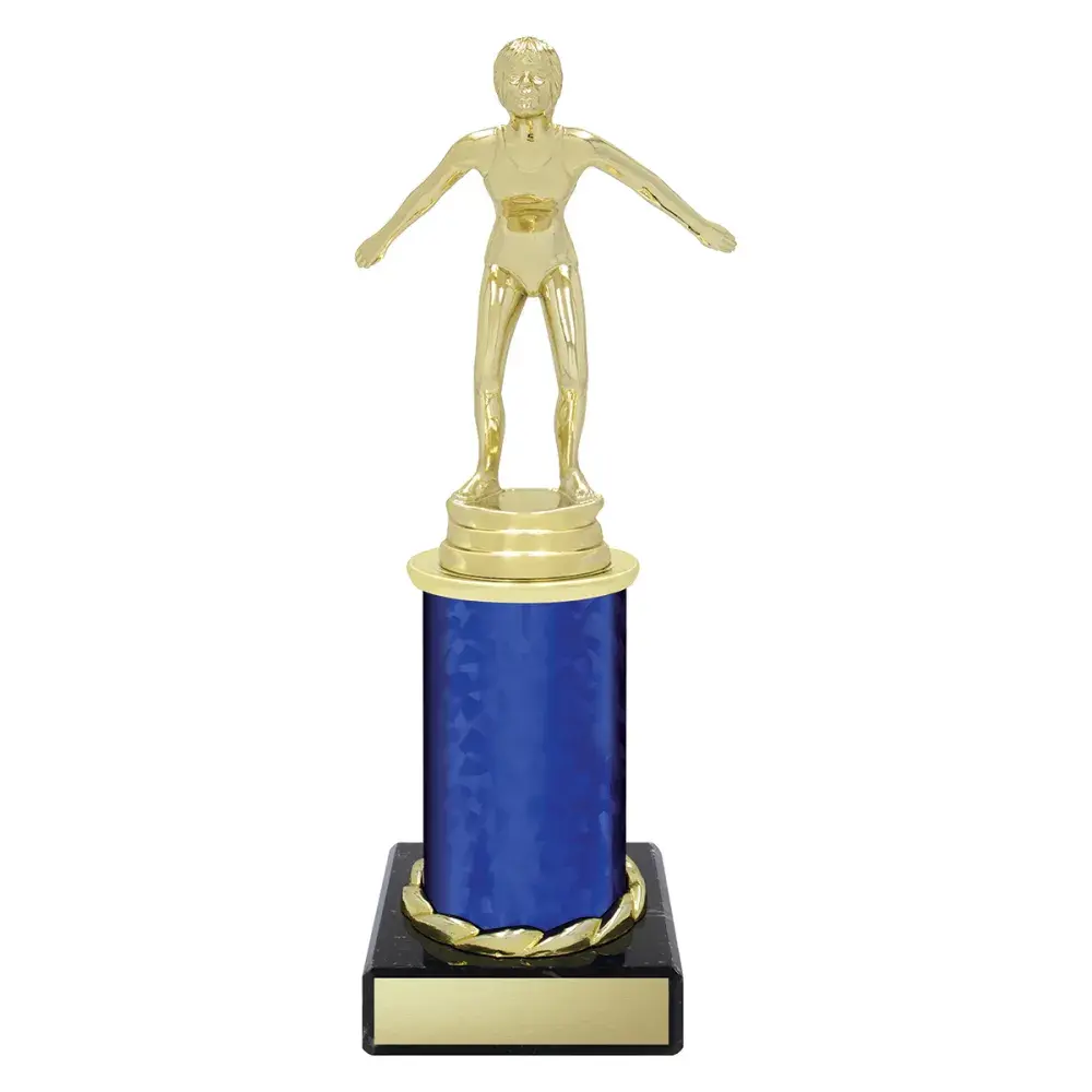Range of affordable trophies feature vibrant colours and showcase the figure for your sport or activity. Columns available in various colours.