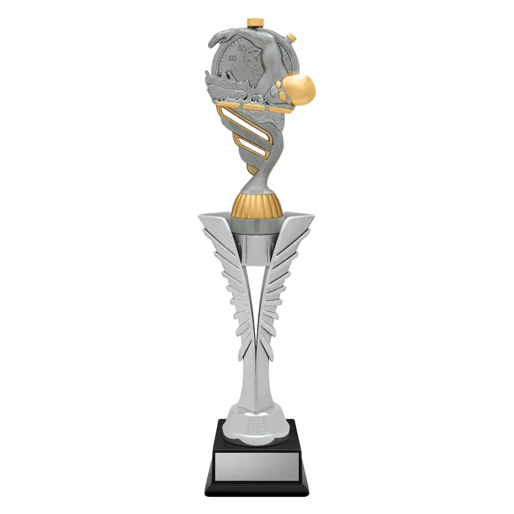 Silver Spear trophies showcase a brilliant top on a distinctive "spear" riser - the top finished in antique silver. Available in 3 sizes.