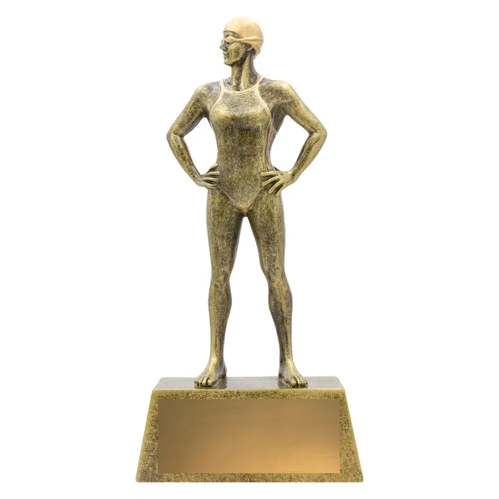 The Hero Trophy series features an iconic champion pose to represent the pinnacle in achievement for swimming. The classic gold trophy series in 3 sizes with significant room for engraving on a substantial base.