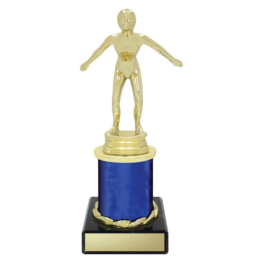 Vibe series of trophies present fresh and affordable trophy alternatives ideal for kids and juniors. Swimming design features google, watch and lane elements with bold and vibrant colours.