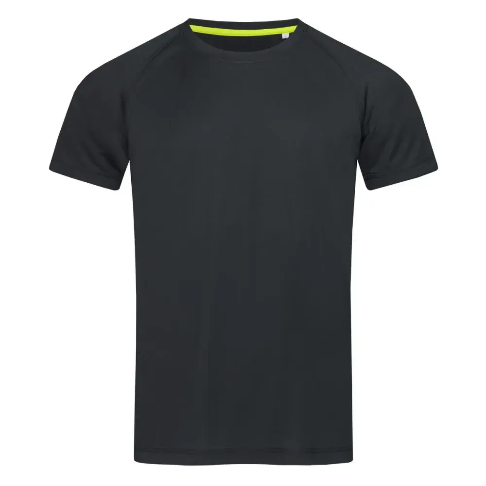 This is a modern activewear men's t-shirt made especially for sports activities. Made with quick-drying, breathable mesh-material: ACTIVE-DRY°. This fabric technology wicks away sweat and moisture--keeping you comfortable & dry, fit for another run.. Contrast neck tape and decorative flatlock seams are great for excellent freedom of movement.