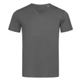 Classic cut V-neck T-shirt for men features collar with rib binding and made of durable single jersey cotton.