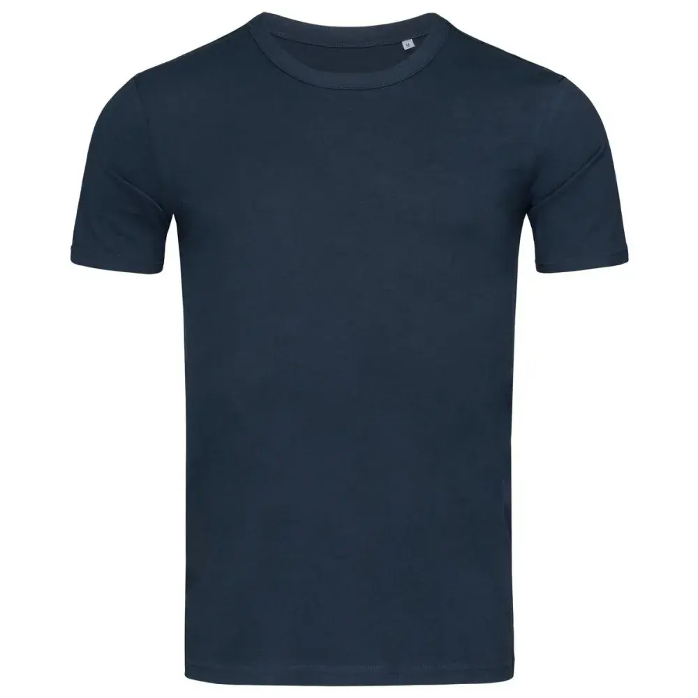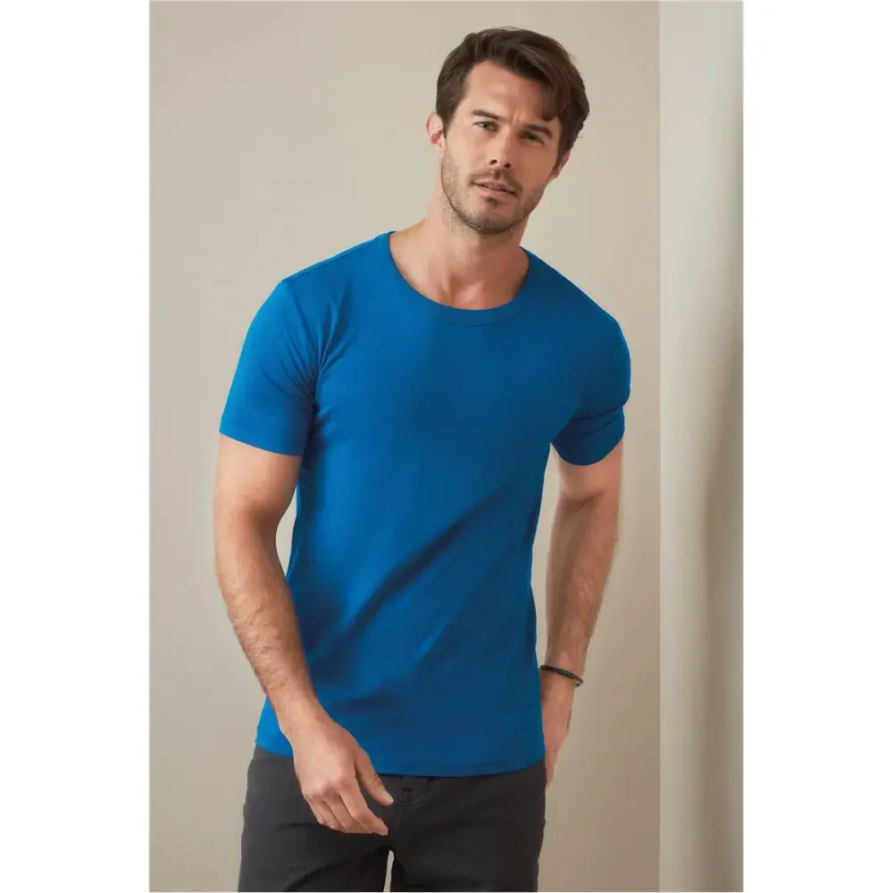 Fitted T-shirt for men features collar with rib binding and made of durable single jersey cotton.