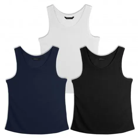 Lightweight women's sports tank top fabricated from 100% polyester for a quick-drying feel