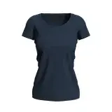 Fitted T-shirt for women, with fashionable length made of soft and sleek cotton-elastane-blend with contrast neck tape.
