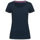 Fitted T-shirt for women, with fashionable length made of soft and sleek cotton-elastane-blend with contrast neck tape.