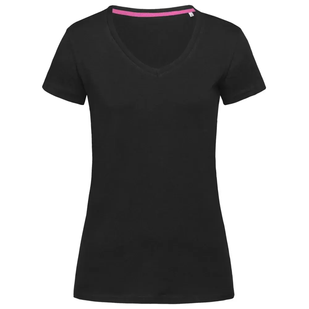 Fitted V-neck T-shirt for women, with fashionable length made of a soft and sleek cotton-elastane-blend with contrast neck tape.