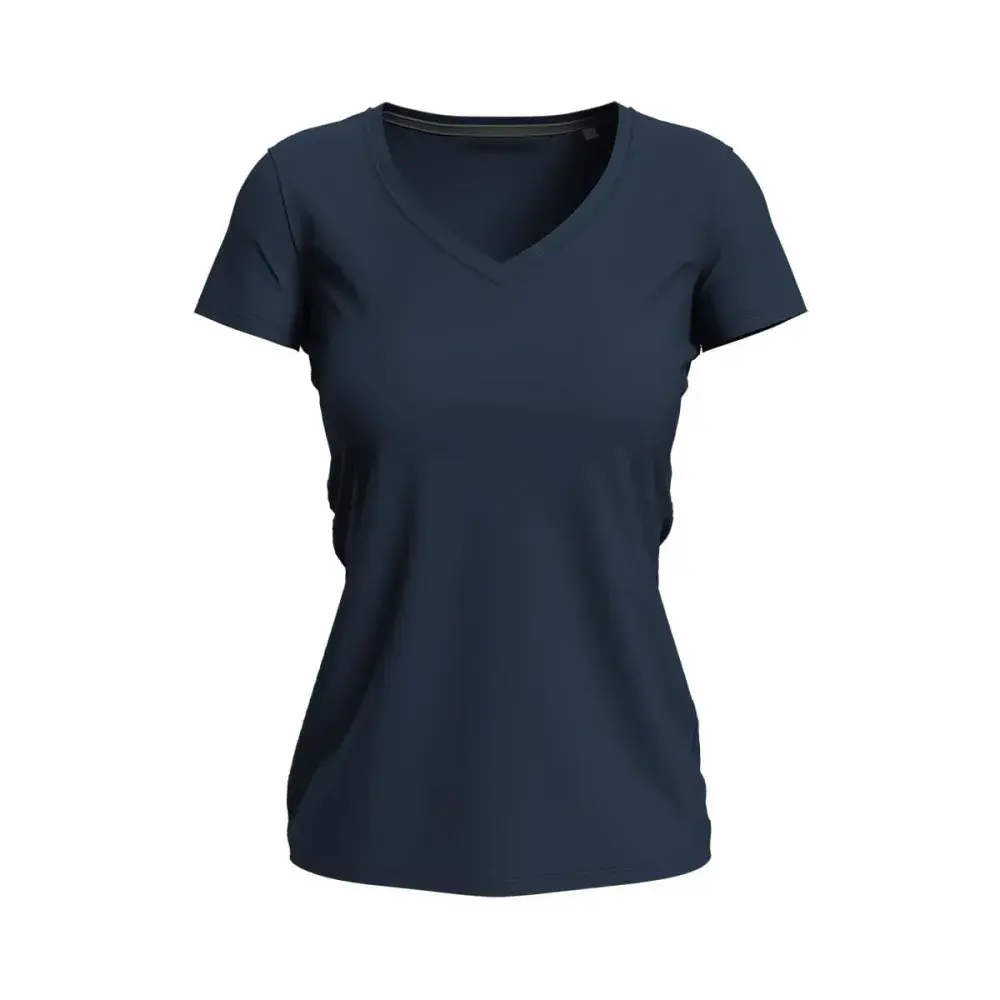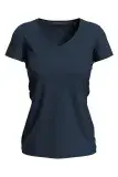 Fitted V-neck T-shirt for women, with fashionable length made of a soft and sleek cotton-elastane-blend with contrast neck tape.
